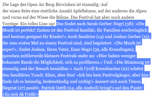 Hey do isch de Paul vum Open Air Berg-Birwinken!Wenn du eis vu es Gratis Festivalticket möchtisch,klick une uf de Button, füll dini Agobe i und sege wo ane mir dis GRATIS Ticket schicke sölled.